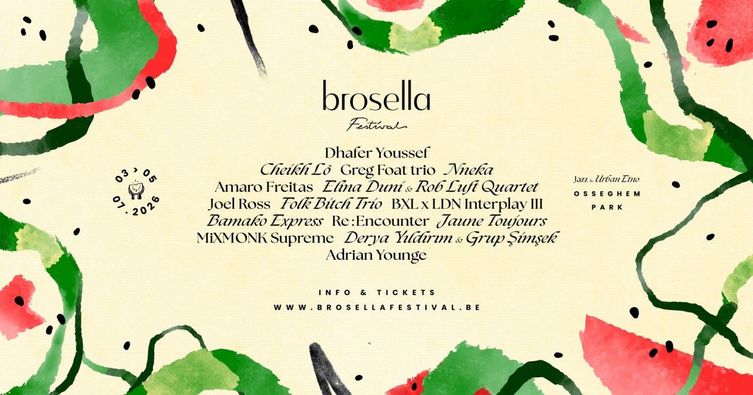 Het Brosella Festival vindt van 3 tot 5 juli 2026 plaats in het Groentheater in het Ossegempark in Brussel. Met vijftien acts verdeeld over drie podia en drie dagen biedt het festival opnieuw een programma dat nergens anders in België te vinden is: internationale jazz en urban etno in de openlucht, aan de voet van het Atomium.