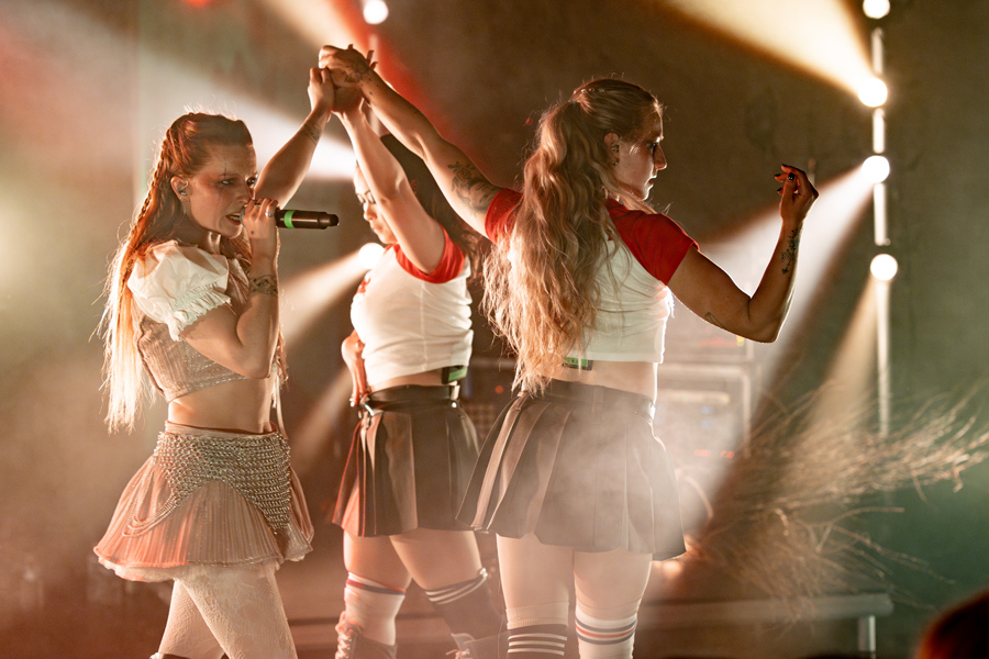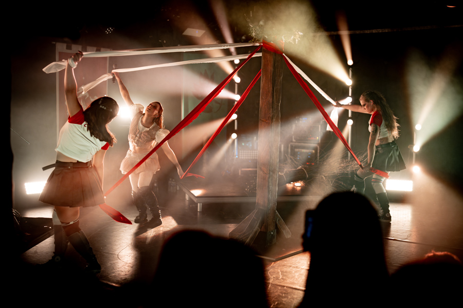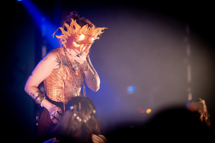 Zaterdagavond bracht Kiki Rockwell haar Europese tour naar de Trix in Antwerpen. Het publiek dat zich voor de deuren verzamelde, had er duidelijk werk van gemaakt: gezichten bedekt met bloedsporen, volledig rood geverfd of versierd als een stralende zon. Een voorbode van de theatrale avond die volgde.