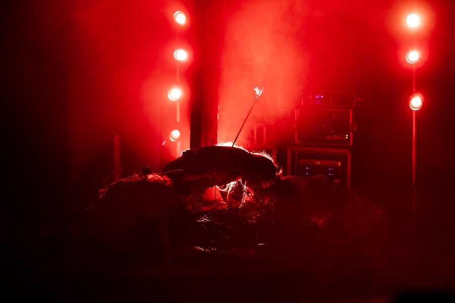Kiki Rockwell verscheen met een sluier. Het podium was sober: geen volledige band, maar een drummer die achteraan wat in de schaduw stond, en twee danseressen die de ruimte opeisten. Die waren niet de hele avond aanwezig, maar verschenen en verdwenen naargelang het nummer daarom vroeg. Het grootste deel van de muzikale ondersteuning kwam van opgenomen materiaal, maar dat deed nauwelijks afbreuk aan de intensiteit van de show. Rockwell schrijft en produceert alles zelf, en dat hoor je. Haar geluid beweegt zich ergens tussen etherische strijkers, duistere synths en gelaagde vocalen die soms bijna monastiek klinken. Live wordt dat een donker sprookje waar je niet zomaar uitstapt.