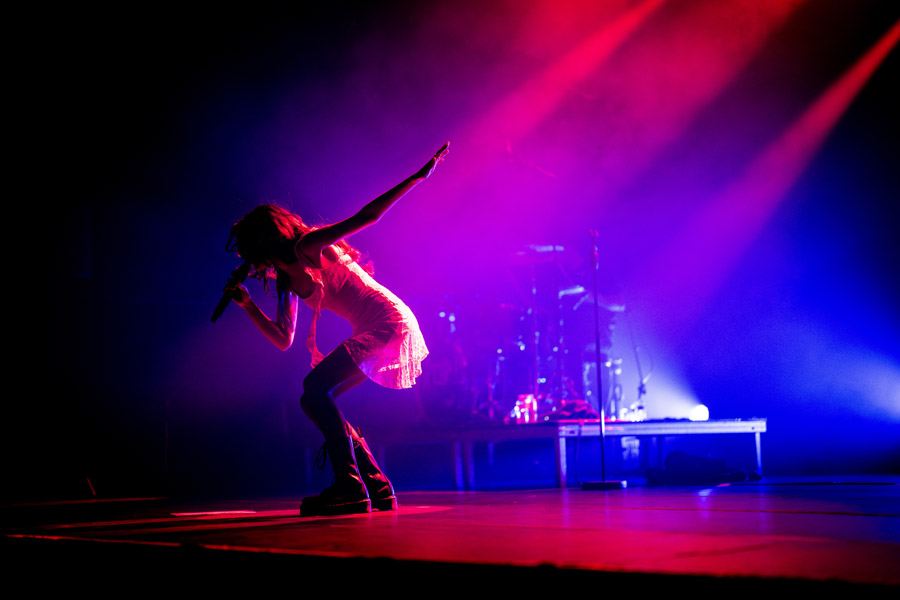 Vanaf dat moment was Rori niet meer te stoppen. Ze danste en bewoog de hele avond over het volledige podium, van de ene naar de andere hoek, met een fysieke aanwezigheid die de zaal voortdurend in beweging hield. Rori toerde met een compacte bezetting waarbij bas en extra instrumenten van op tape kwamen, een oplossing die verrassend levend aanvoelde en de gladde kant van zuiver geprogrammeerde pop vermeed. De chemie op het podium was tastbaar, en de energie die ze uitstraalde maakte elke song groter dan haar studioversie. Nummers als ‘Vérité’, een wervelende rondedans waarbij ze de hoeken van het podium verkende, en ‘Loser’ bewezen hoe goed ze wist hoe ze een zaal in haar greep hield. Met dat laatste nummer maakte ze van een scheldwoord uit haar schooltijd een jubelend geuzennaam, en de zaal zong elke regel mee.