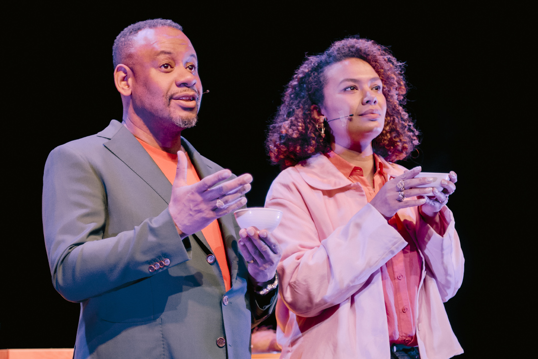Binnen de Surinaamse cultuur is de diverse, rijke keuken één van de meest herkenbare steunpilaren. Bruine bonen met rijst, roti masala of heri heri; elk gerecht leidt terug naar de wortels van de bevolking. Vele groepen werden door Nederland naar Suriname gebracht, waar een smeltkroes van gerechten ontstond. Howard Komproe en Noni Kooiman onderzochten deze relatie voor hun nieuwe theatervoorstelling ‘Peper & Zuur?!’, en het gevolg was een mooi verhaal over identiteit en herkomst in Schouwburg Het Park te Hoorn.