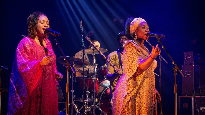 De Electric Band is gemaakt om te laten dansen. Muzikaal leider en gitarist Guimba Tamba bewoog op een lichte Fender Jaguar door blues, Mande-funk en stadion-rock zonder te schuiven in zijn houding. Waar Keita met handgebaren stuurde, dirigeerde Tamba met een hoofdknik, en in ‘Yamore’ verraste hij met een rockende solo die het nummer een onverwachte schwung gaf. ‘Yamore’ is sowieso een ander beest geworden sinds Cesária Évora in 2011 overleed: het duet werd nu een gesprek met een afwezige. Dat backing-vocaliste Aïcha Mariko op die plek de Évora-rol overnam, en het werkte, zegt iets over de zorgvuldigheid waarmee deze band is samengesteld. Mariko en Fatoumata Soubeiga functioneerden als duo strak en zonder show, maar namen in ‘Tekere’ en ‘Africa’ het publiek over wanneer ze moesten aanzwepen, Mande-zang in zijn zuiverste vorm, geworteld in een traditie waarvan ze elke nuance kennen.