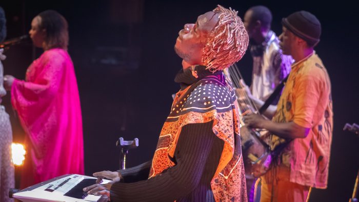 De band groovde al toen Salif Keita aan de arm van zijn zoon het podium van het Parkstad Limburg Theater in Heerlen op kwam. Hij ging zitten achter zijn microfoon, wachtte een tel, en opende zijn mond. Door de zaal trok een hoorbaar “wow”. De stem die Mali in de jaren tachtig op de wereldkaart zette, en die de wereldmuziek sindsdien niet meer heeft losgelaten, was er nog. Onverkort. Zaterdagavond 25 april stond de 76-jarige Keita met zijn negenkoppige Electric Band in het Parkstad Limburg Theater, en wie verwachtte dat een gemarkeerde ‘Legend Tour’ bij voorbaat de toon zou zetten van een afscheid, kreeg het tegendeel te horen.