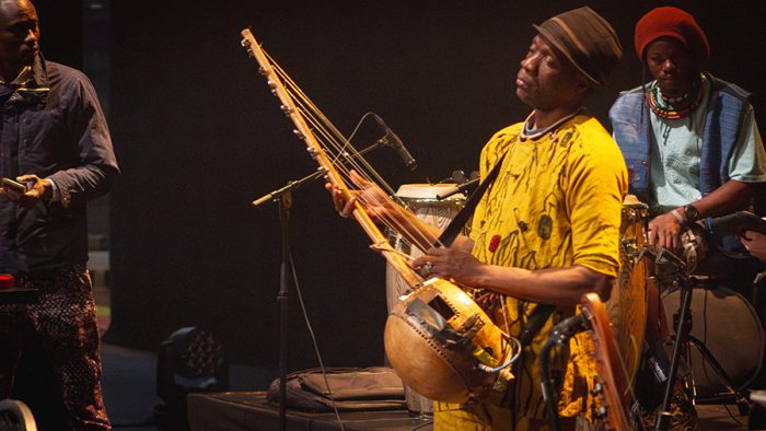 ‘Tekere’ opende daarna de zaal. En toen ‘Madan’. In ‘Madan’ stond het publiek aan het einde op het podium. Malinezen, Limburgers, Belgen, en wie zich er verder maar tussen wist te dringen, dansten samen met de band in een lange jam tot Keita opstond, lachte, en het slot inzette. Salif Keita laat de wereld dansen, dat is wat hij doet, dat is wat hij veertig jaar lang heeft gedaan, en op deze zaterdag in Heerlen liet hij zien dat hij dat blijft doen. Eén nummer werd gemist door wie ‘Mandjou’ was komen halen, een klassieker uit de vroege jaren die niet op de setlist stond. Dat was de enige kanttekening. Anderhalf uur, geen toegift, geen overbodige noot.