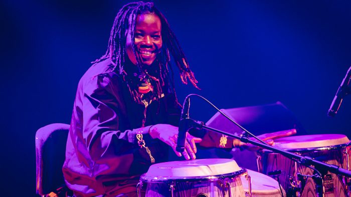 Halverwege het concert kwam het nieuws. ‘Nous Sommes Réveillés’, onuitgebracht, nog niet eerder live gehoord, een wereldpremière. De titel is Frans, niet Bambara: ‘Wij zijn wakker geworden’. Keita kiest die taal alleen wanneer hij politiek wil zijn, van ‘Nou Pas Bouger’ in 1989 tot ‘La Différence’ in 2010. Het nummer markeert het begin van een nieuw album, waar deze Electric Band binnenkort de opnamen voor begint. Wie in 2018 het slot vermoedde, was acht jaar later nog niet aan de beurt . Dit was geen afscheidstour. Dit was een doorstart. Keita sprak spaarzaam tussen de nummers. Hij liet de muziek het werk doen, en de muziek deed steeds dwingender werk. Op zijn stoel dirigeerde hij, knikte naar Tamba, naar Mariko, naar Sagara achter de drums. De liefde, of beter het respect, tussen de oude man en zijn jonge band was in elk gebaar voelbaar. ‘Tonton’, ‘Laban’, ‘Papa’, het persoonlijke kader van de set, vader en moeder als bookends, en toen kantelde de avond richting de slotreeks.